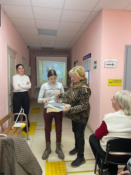 Начальник КЦСОН Ермакова Наталья Александровна и работник КЦСОН Фомичёва Ольга Михайловна рассказали о том, как трость стала символом для незрячих, и почему она имеет белый цвет.