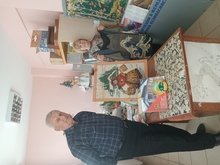 На выставке были представлены работы в технике «художественное вязание на спицах». Эта техника является наиболее сложной. Для начала делается рисунок изображения. Затем он раскладывается по клеточкам, в котором каждая из клеточек – это петелька будущего изделия. Можно сделать рисунок на бумаге-миллиметровке. Это схема, которую надо держать перед собой во время вязания. Работа кропотливая и требует усидчивости, ведь некоторые из работ делаются в течение нескольких недель. Художественному вязанию Валентину научила мама. Материалом для первых работ были нити, которые мама пряла из шерсти овец. Но для художественного вязания подойдут и любые другие нити, даже синтетические. Главное – сохранить изделия в хорошем состоянии, ведь некоторые из работ были изготовлены более 15 лет назад.
