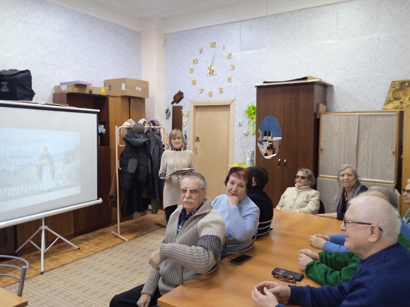 Библиотекарь Наталья Васильевна Коробейникова рассказала членам ВОС о человеке, чьё имя стало синонимом святости, мужества и любви к родной земле. О столпе земли Русской –преподобном Сергии Радонежском.