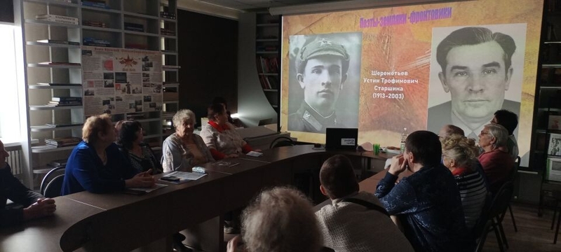 Видеопрезентацию- биографию поэтов-земляков-фронтовиков представила член ВОС, ведущая клуба «Родники» Светлана Рубеко. Каждый участник мероприятия принял активное участие, читая стихи наших поэтов-земляков о войне: председатель Жуковской МО Носикова Ирина Сергеевна - «Горсть земли» Павла Быкова, секретарь Жуковской МО Степанова Ольга - «Земля в дыму, в пожарищах» Устина Шереметьева, члены ВОС:Антонина Терехова - «Солдат» Александра Старостина, Маргарита Андриуца – «Моряк»Алексея Попкова, Кузнецова Валентина - «Память»Анатолия Титова. Гимн городу Жуковка на словапоэта Митрофана Рубеко прозвучал в исполнении членов ВОС: Зинаиды Кострюковой, Галина Барановой.