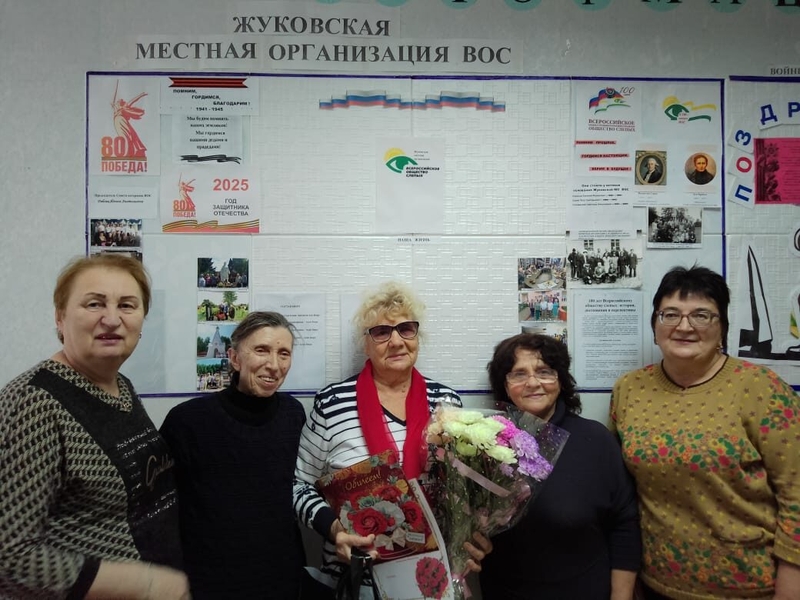 Члены бюро Жуковской МО ВОС поздравили с юбилеем председателя Совета ветеранов местной организации Рябову Ядвигу Анатольевну.