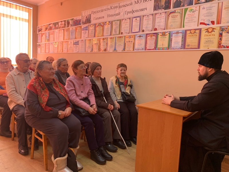 Далее иерей Димитрий рассказал о православном празднике масленица. Название дней Масленичной недели: понедельник - «Встреча», вторник – «Заигрыш», среда – «Лакомка», четверг – «Разгуляй», пятница – «Тещины вечерки», суббота – «Золовкины посиделки», воскресенье – «Прощёное воскресенье». Вкратце иерей Димитрий объяснил, как правильно провести Великий пост людям с ослабленным здоровьем. Время Великого поста специально дается Церковью, чтобы мы могли собраться, сосредоточиться и подготовиться к встрече пасхальных дней. Великим постом нужно постараться наверстать упущенное, заполнить пробелы в нашей духовной жизни, которая так пострадала от жизненных неурядиц, рассеянности, лености и прочего.