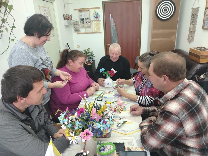 Участники встречи сыграли несколько партий в шахматы, шашки и тактильное домино, продолжили плетение из бисера цветочной композиции, а также поделились идеями поделок к новогодним праздникам.