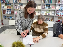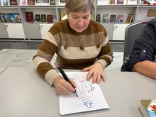 Анастасия Сергеевна провела для участников мероприятия увлекательные, познавательные и веселые конкурсы «Правда или вымысел» и «Новогодний кроссворд». Далее участникам было предложено нарисовать Деда Мороза: каждый рисовал одну деталь, которую называла ведущая, и сделать это надо было разными способами, например, левой рукой, с закрытыми глазами, зажав фломастер локтем и др. Конкурсы вызвали смех и бурю положительных эмоций!
