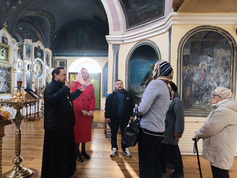 Экскурсию провел иерей Максим, обладающий глубокими знаниями в церковной истории и архитектуре. Он подробно рассказал об истории древнего храма, его архитектурных особенностях, относящихся к разным историческим эпохам, и уникальных реликвиях, чудом сохранившихся до наших дней.