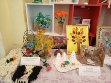 Завершает экспозицию коллекция работ рукодельниц творческой мастерской «Мир фантазий». Их новаторские флористические композиции из синельной проволоки открывают посетителям выставки совершенно новыенаправления в искусстве ручной работы. Эти яркие и необычные цветочные букеты притягиваютвзгляды и подчеркивают богатство фантазии и оригинальность творческих решений.