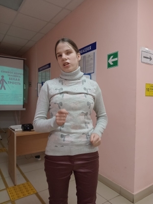 Начальник КЦСОН Ермакова Наталья Александровна и работник КЦСОН Фомичёва Ольга Михайловна рассказали о том, как трость стала символом для незрячих, и почему она имеет белый цвет.