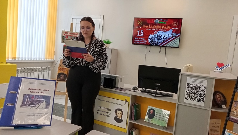 11 февраля в «Суражской районной межпоселенческой библиотеке» прошло социокультурное мероприятие - встреча членов клуба «Поговорим по душам» Унечской МО ВОС. Для присутствующих литературно-музыкальный час «Афганистан - наша память и боль» провела ведущий библиотекарь отдела обслуживания Анастасия Сергеевна Крутикова.