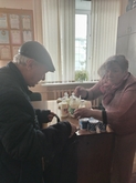 Председатель Брянской МО ВОС Светлана Валерьевна Бортник поздравила присутствующих с наступающим праздником Светлой Пасхи и вручила наборы молочной продукции в качестве гуманитарной помощи.